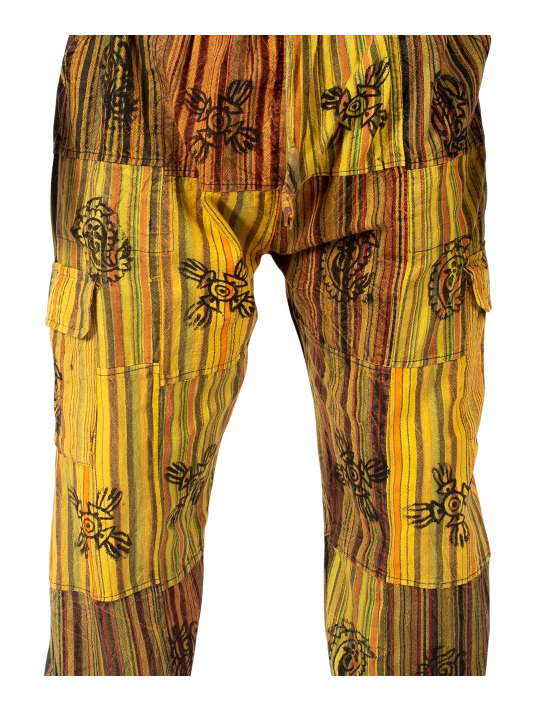 Entdecken Sie authentische indische Ethno-Mode mit diesen handgefertigten Patchwork-Hippiehosen – ein einzigartiges Kleidungsstück, das in traditionellen Werkstätten in Indien von Hand gefertigt wird.