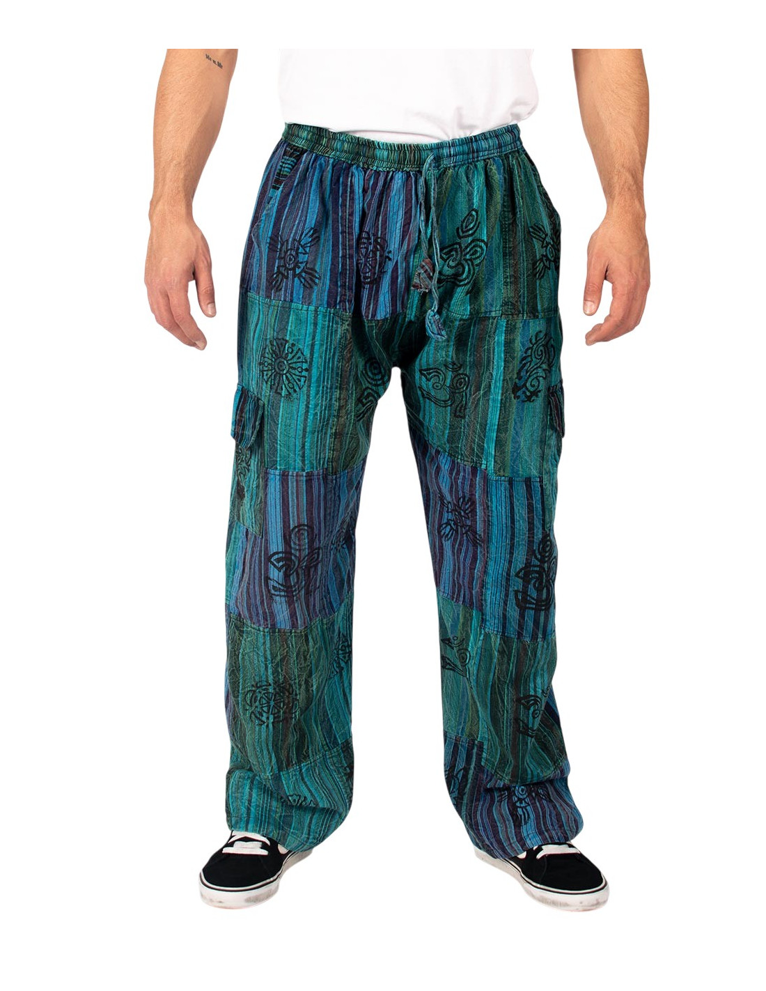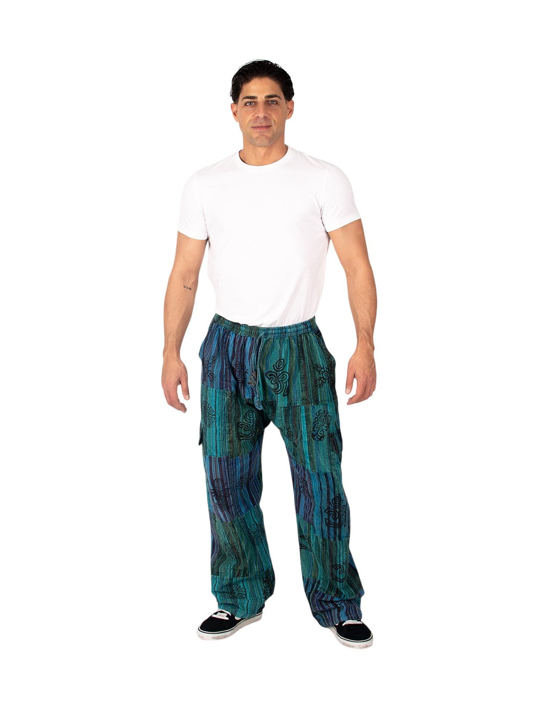 Erhältlich in Hellblau oder Grün, Unisex-Design mit elastischem Bund und authentischem Boho-Stil.