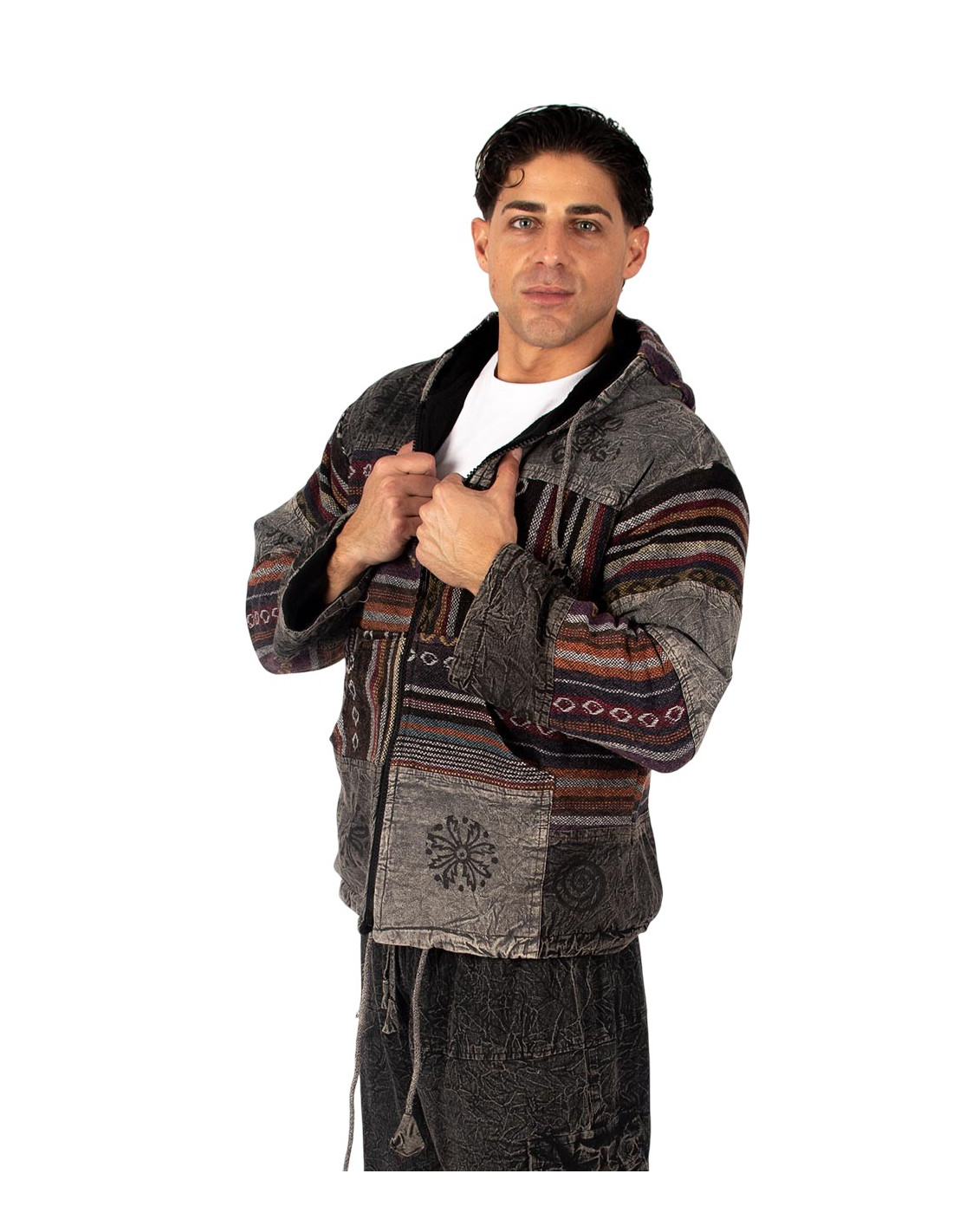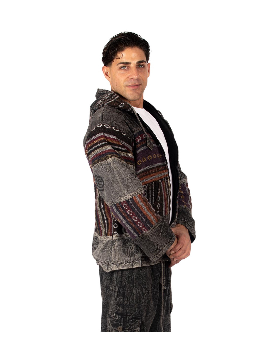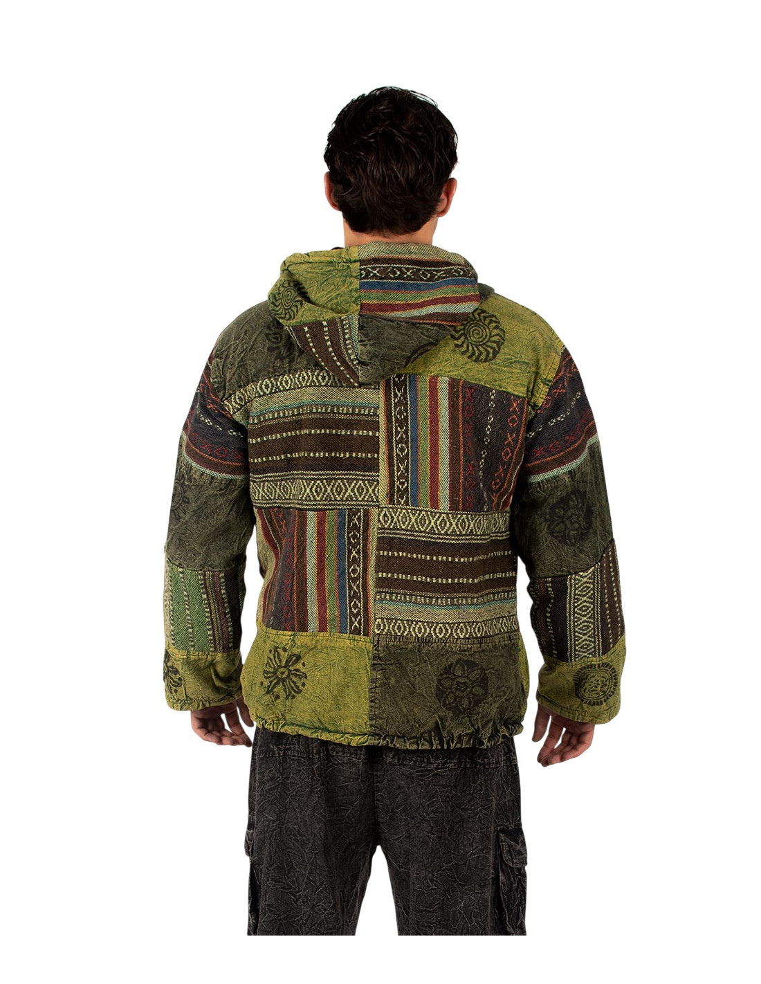 Diese Unisex-Patchworkjacke verkörpert die perfekte Balance zwischen traditioneller indischer Handwerkskunst und modernem Stil.