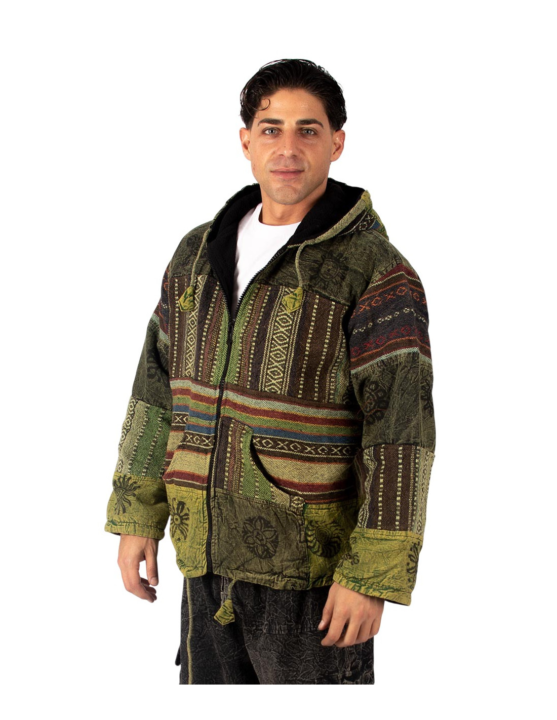 Unisex-Patchworkjacke mit Fleecefutter – Handgefertigt in Indien