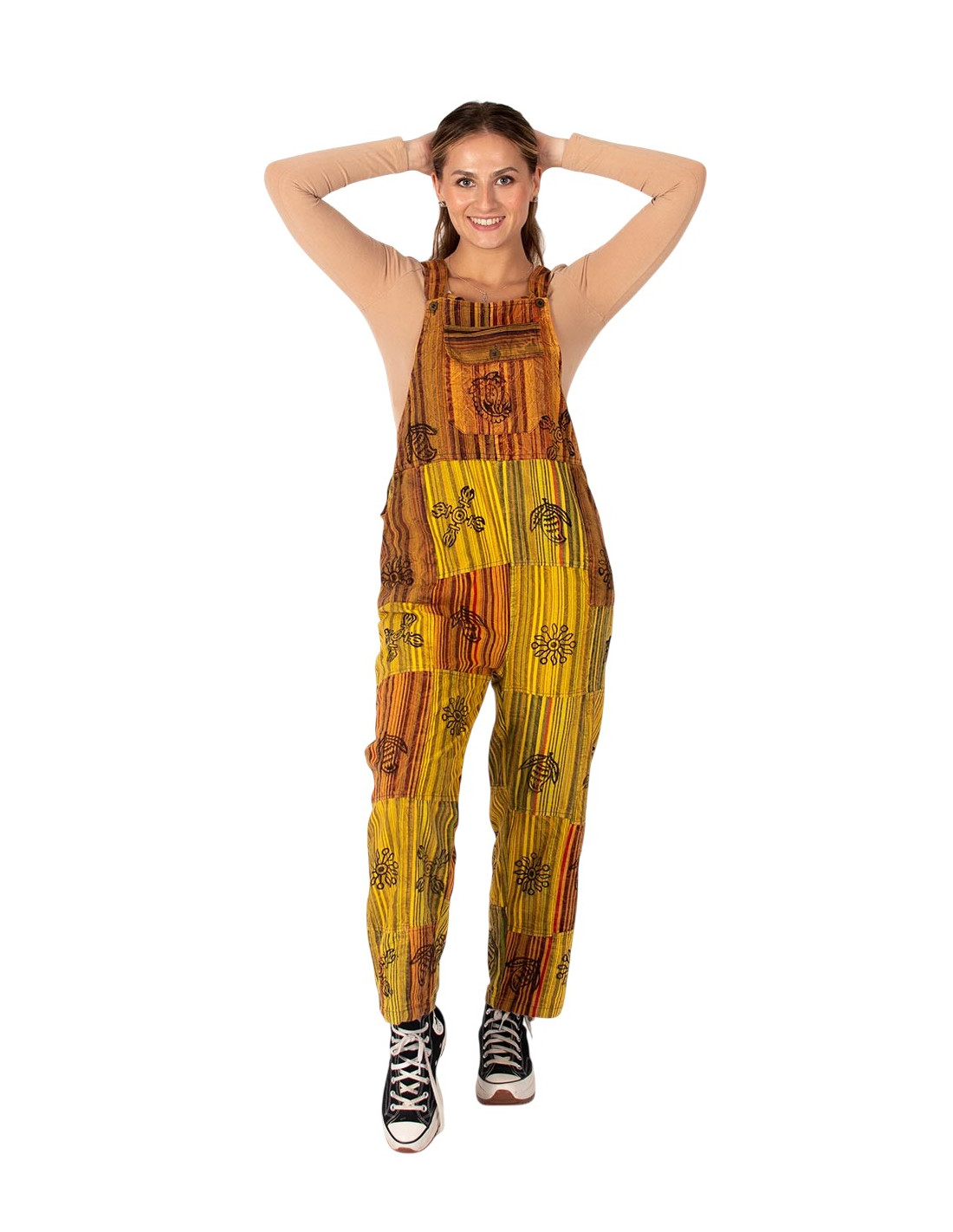 Unisex-Patchwork-Baumwolloverall – Gelb oder dunkle Farbtöne