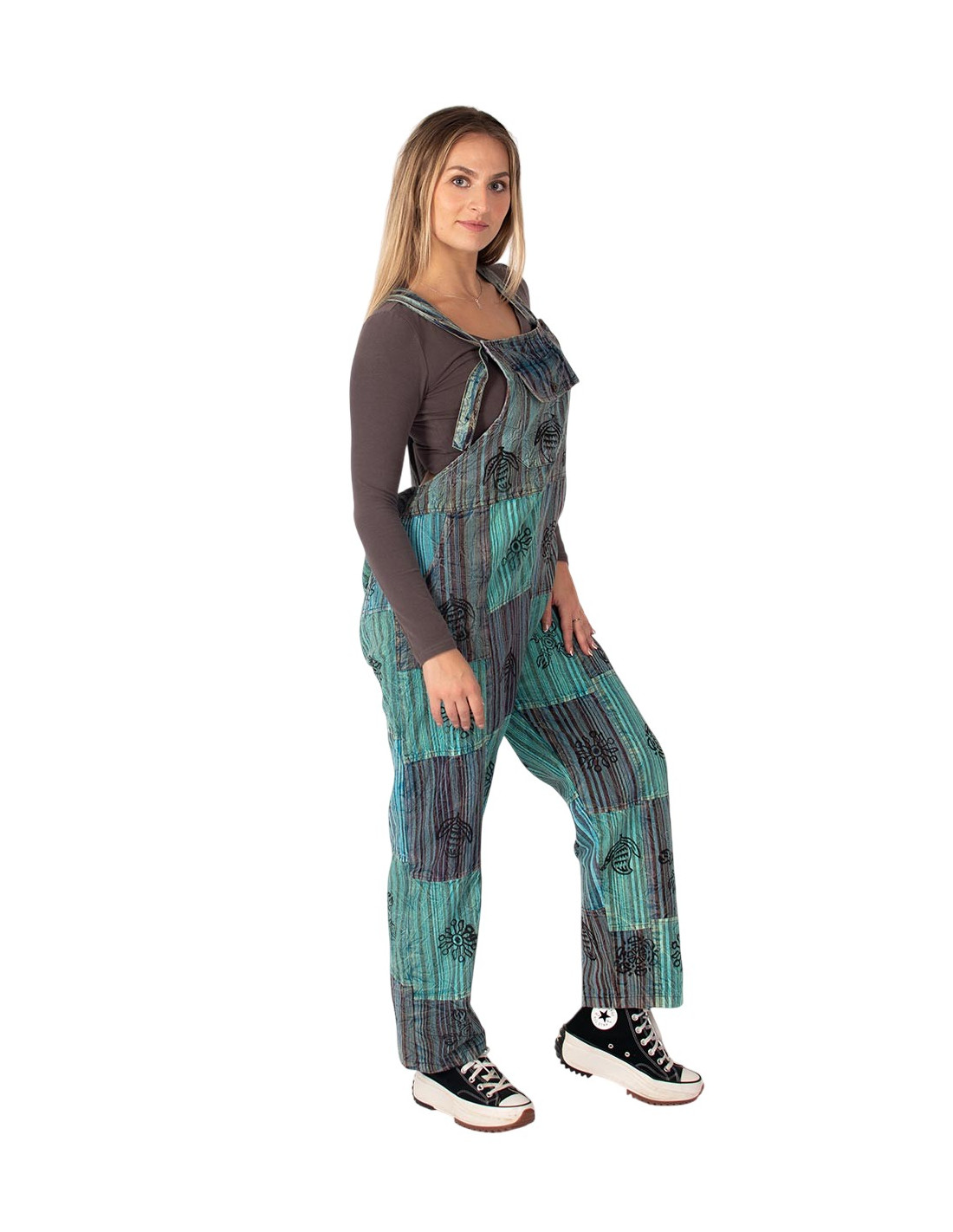 Dieser Jumpsuit ist ideal für alle, die Wert auf Komfort, Authentizität und Nachhaltigkeit legen. Er lässt sich perfekt mit schlichten T-Shirts kombinieren und sorgt für ein lässiges, freies und künstlerisches Boho-Feeling.