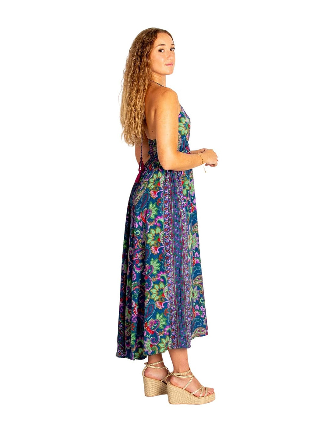 Das Boho-Maxikleid von Kimago ist ein einzigartiges Stück, das Eleganz, Frische und indische Handwerkskunst in einem Design vereint, das die Weiblichkeit mit Stil unterstreicht.