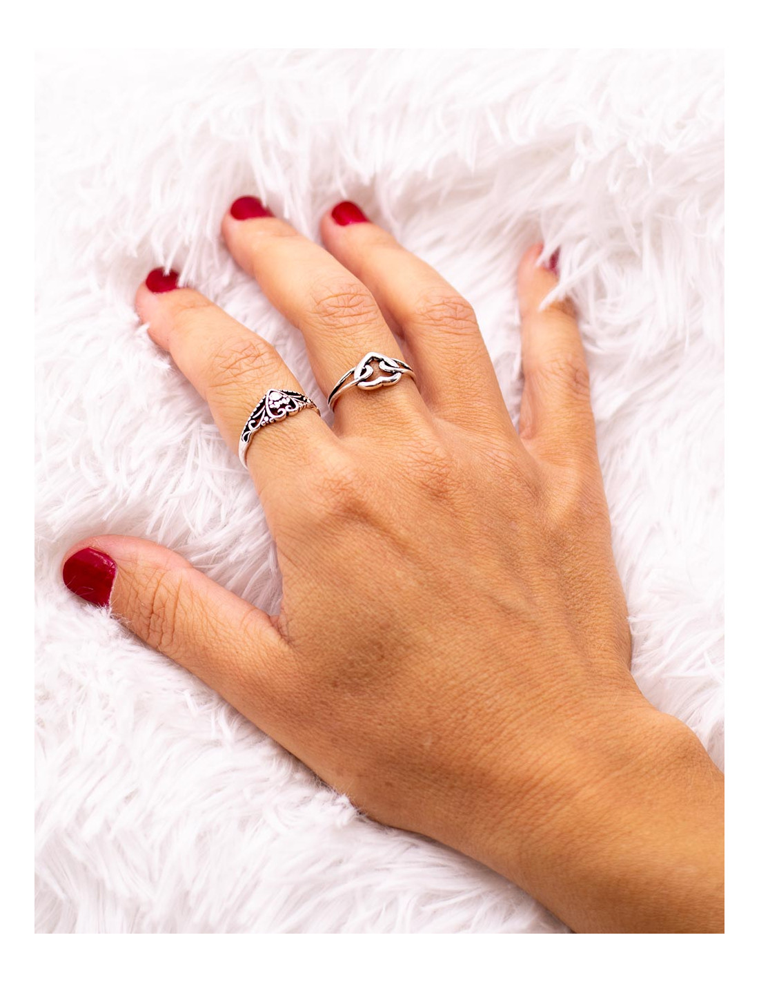 Dieser silberplattierte Messingring (eine Kupfer-Zink-Legierung) besticht durch sein handgefertigtes Design, das von traditionellem indischem Schmuck inspiriert ist. Sein Hauptelement ist ein handgeschnitztes Herz in der Mitte – ein universelles Symbol für Liebe und Verbundenheit, neu interpretiert mit der reichen Ästhetik indischer Handwerkskunst.