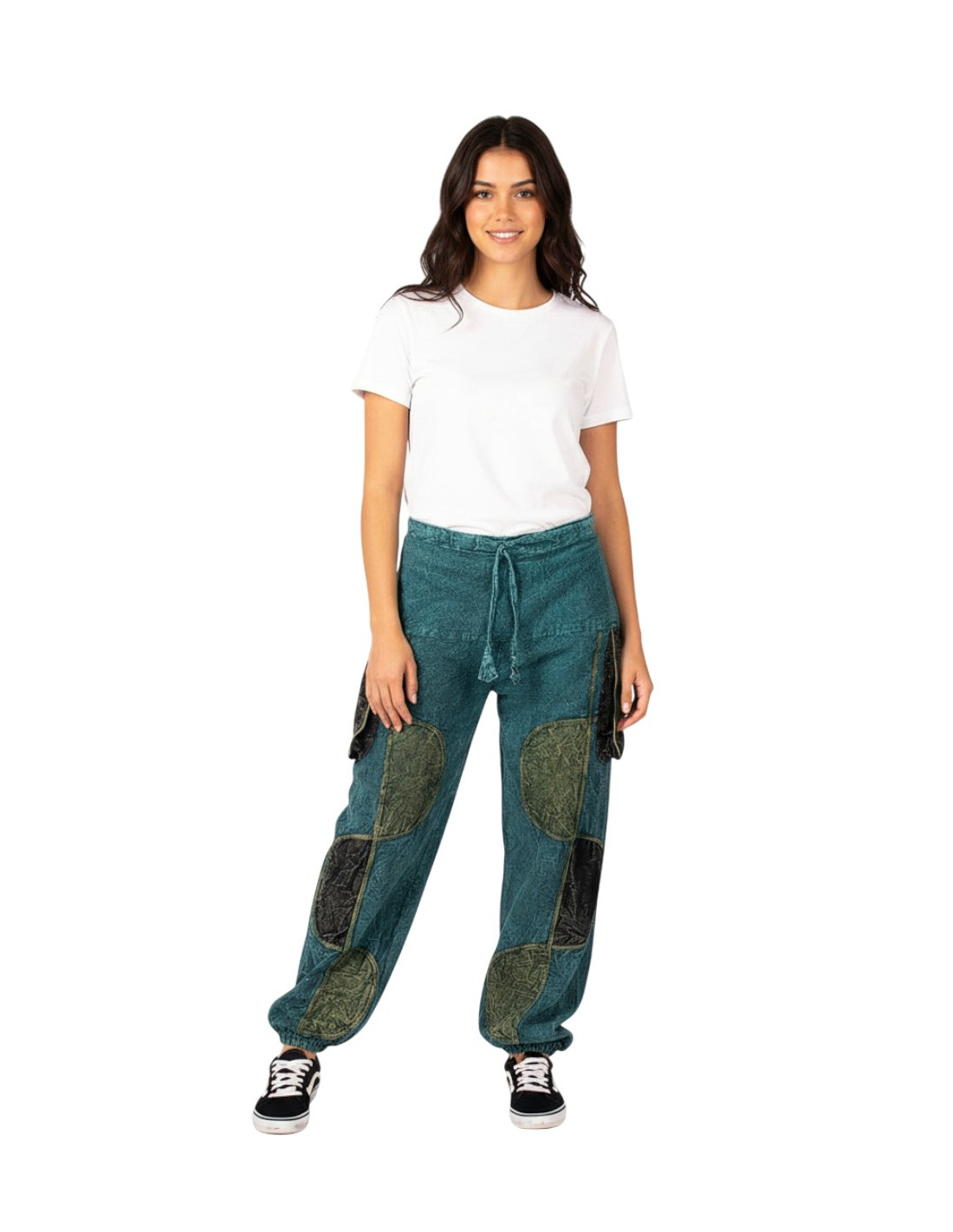 These unisex cotton harem pants , handcrafted in India, combine comfort, ethnic style, and a bohemian touch, perfect for everyday wear. Made with cotton treated using the cotton blast technique, they offer a distressed effect that enhances their authentic and alternative character.