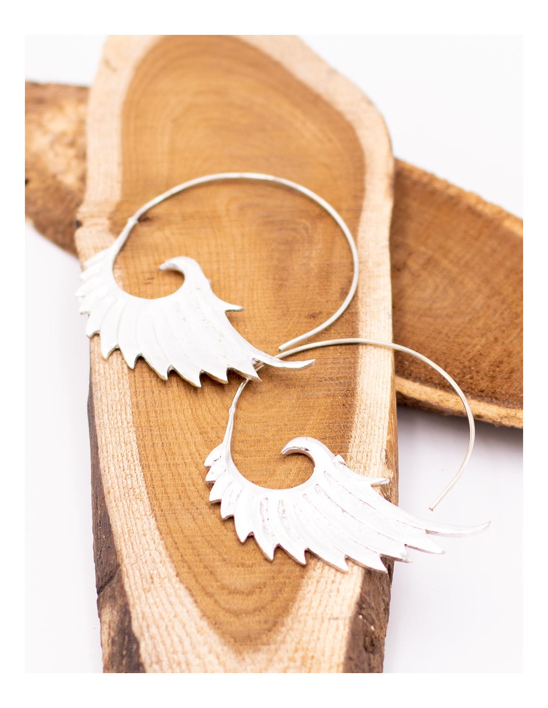 Their wing-inspired design combines originality, elegance, and a touch of fantasy, making them the ideal accessory for those seeking authentic, handcrafted ethnic jewelry . Measuring approximately 6.5 cm in length , they are lightweight and comfortable, perfect for completing any look, from boho chic to modern and sophisticated.