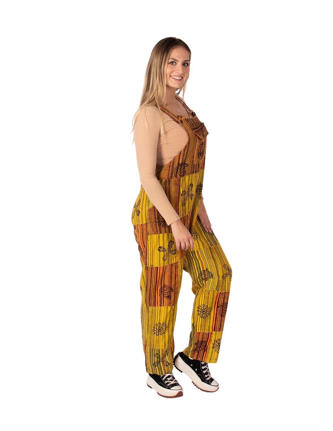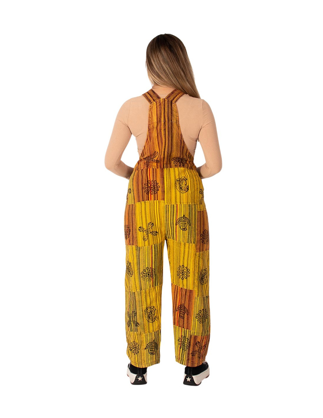 Unisex patchwork cotton jumpsuit – Yellow or dark shades
