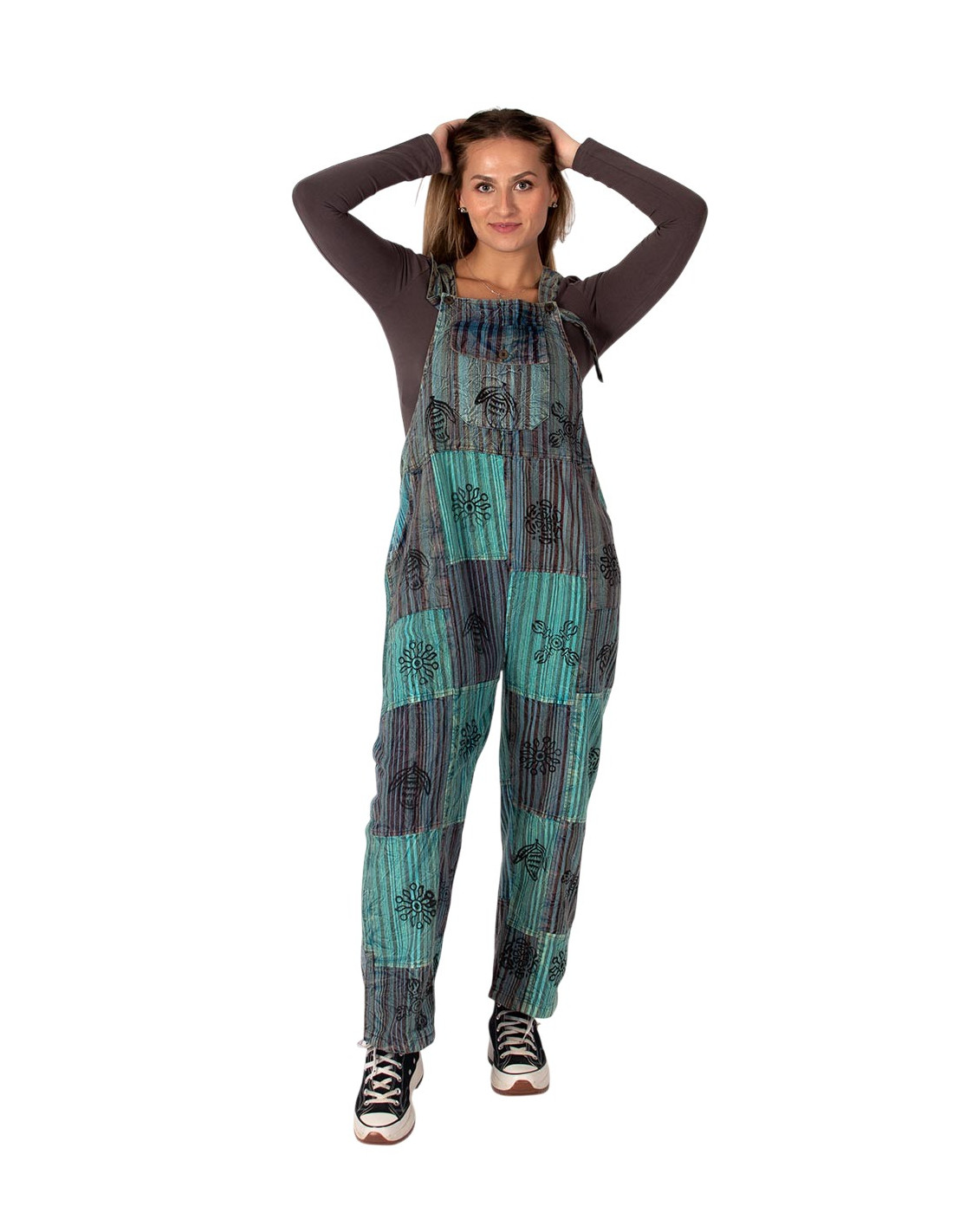 Unisex handmade patchwork cotton dungarees – Green or light blue