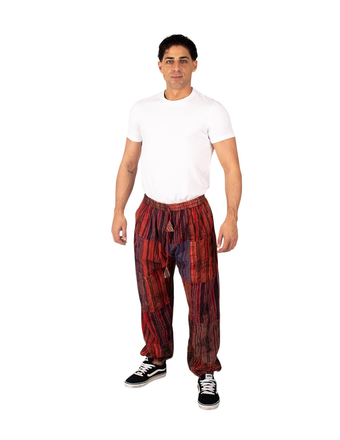 Discover the comfort and authentic style of our unisex patchwork harem pants in red , a handcrafted garment inspired by Indian ethnic fashion. Each pair is unique , as the cotton scraps are combined differently in each piece, creating a one-of-a-kind design that cannot be replicated.