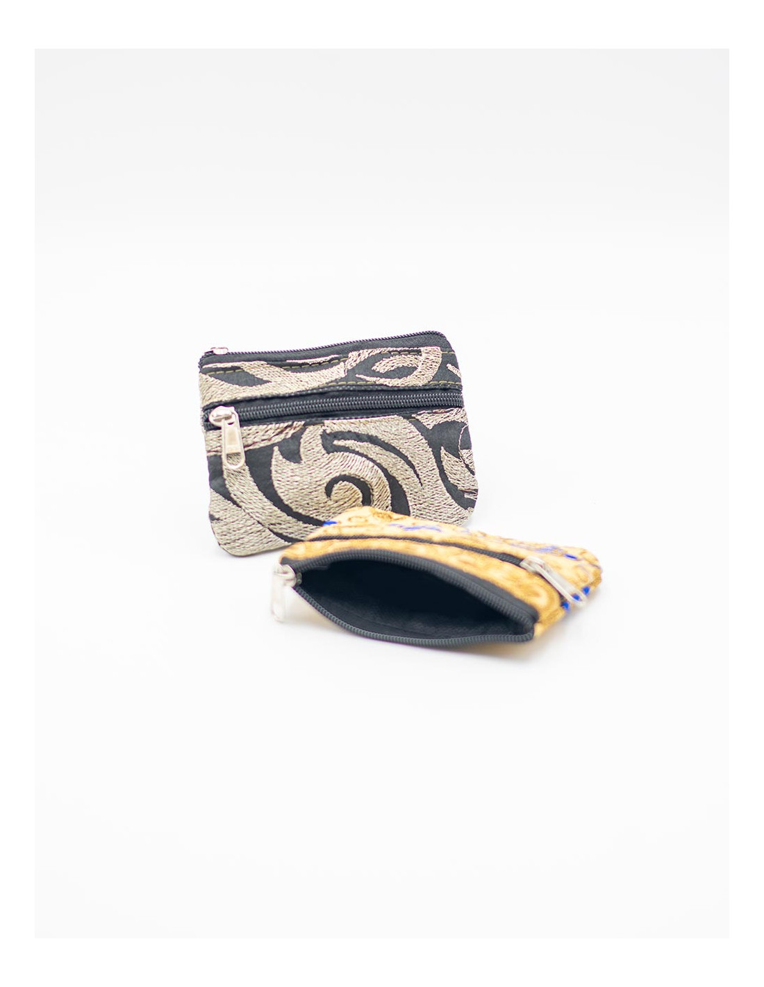 Monedero artesanal de tamaño mediano, con bordados de inspiración india y doble cremallera. Cada unidad es única, práctica y con alma.