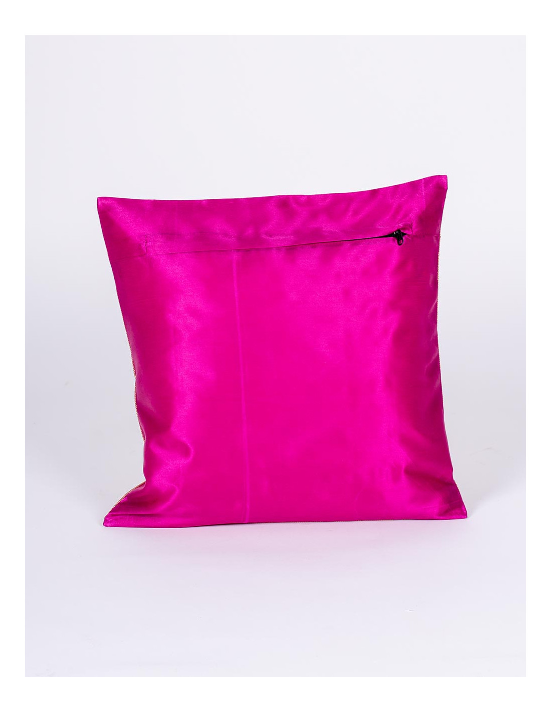 La parte trasera en rosa liso mantiene una estética armoniosa y facilita su combinación con otros cojines o textiles del hogar. Además, dispone de cremallera en la parte posterior, que permite colocar el relleno cómodamente y retirarla con facilidad para su limpieza.