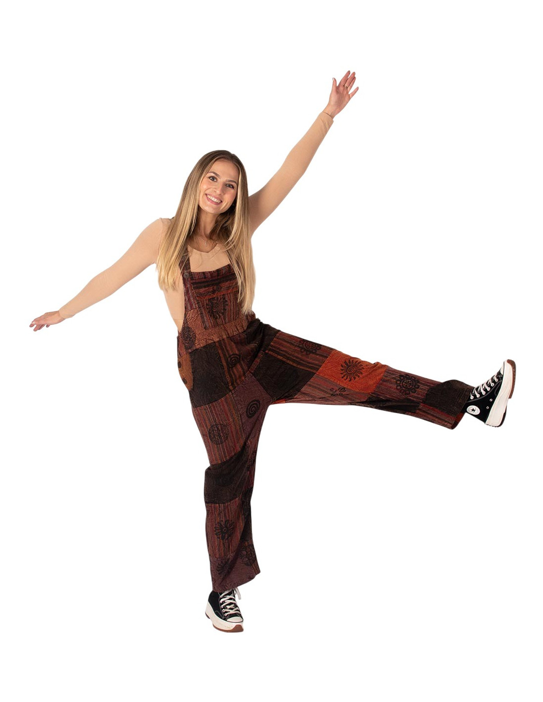 Disponible en color rojo o gris oscuro, ambos tonos fáciles de combinar, este mono transmite carácter, personalidad y un fuerte vínculo con la cultura textil india. Aunque la fotografía muestre a una mujer, se trata de una prenda unisex, perfecta tanto para looks urbanos como bohemios, festivales o escapadas conscientes.