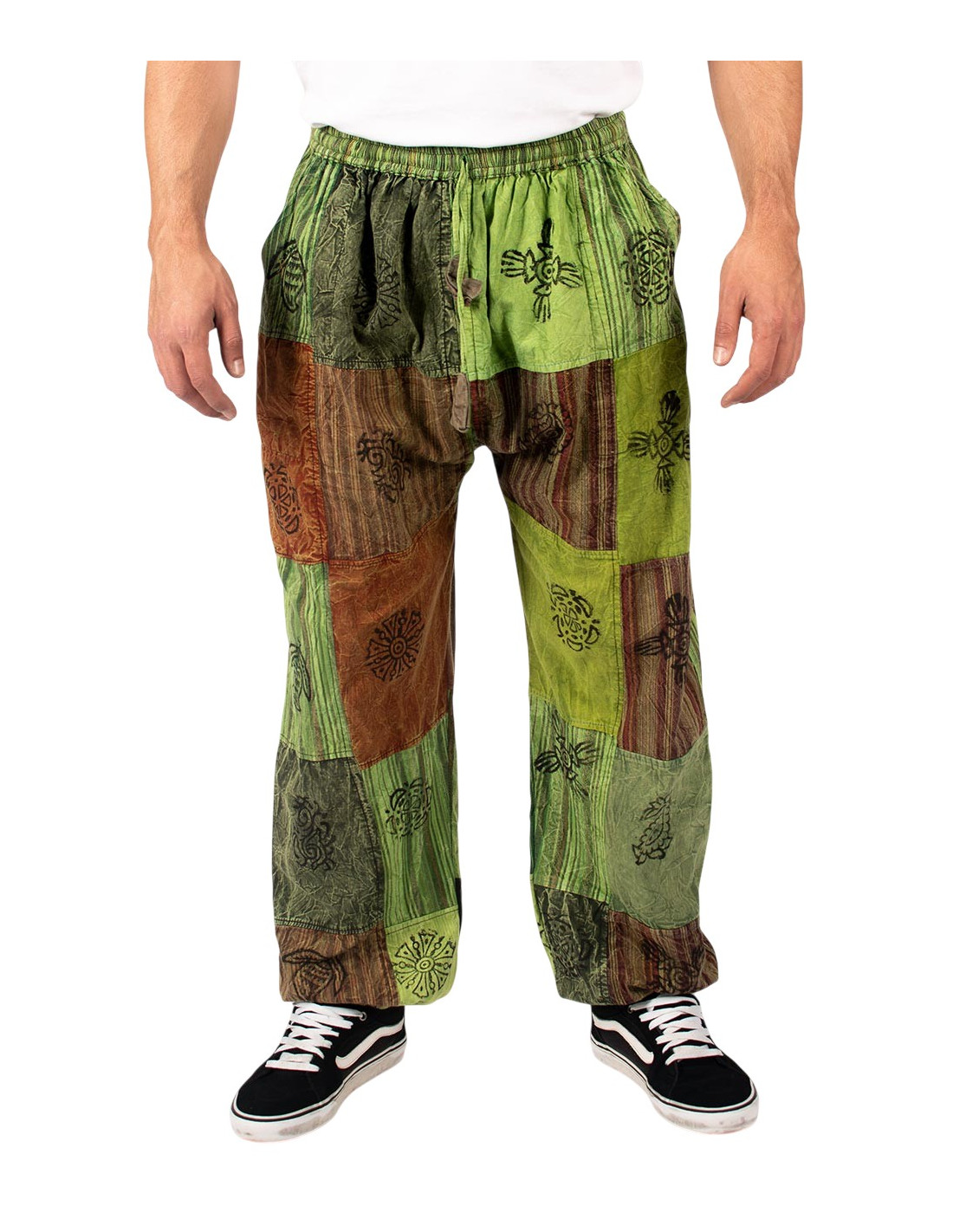Pantalón bombacho unisex patchwork tonos verdes de algodón