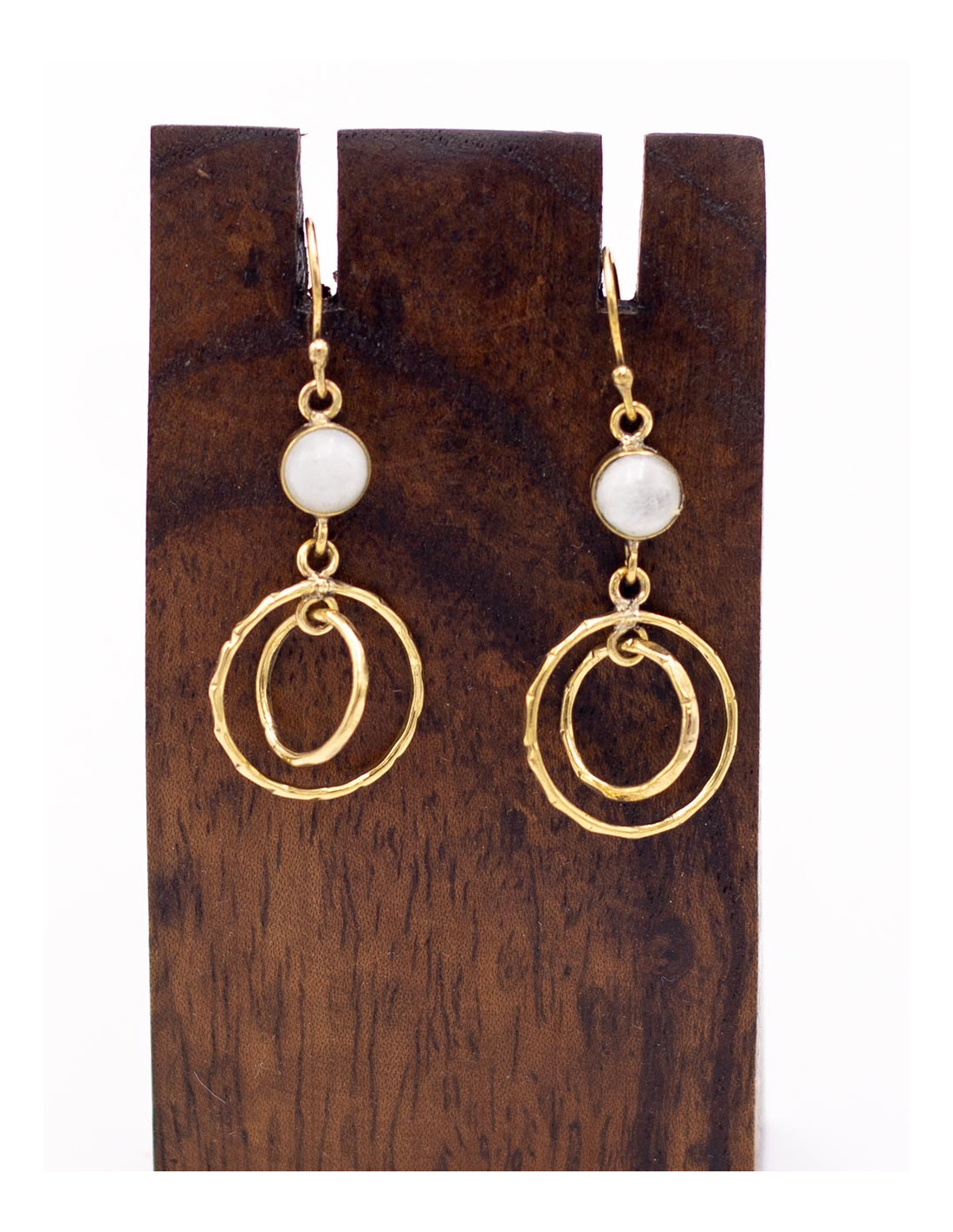Les boucles d'oreilles en or avec cercles et pierres minérales de Kimago sont un bijou artisanal qui reflète l' élégance et l'âme de la mode ethnique indienne .