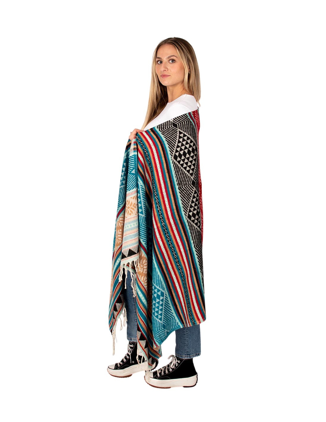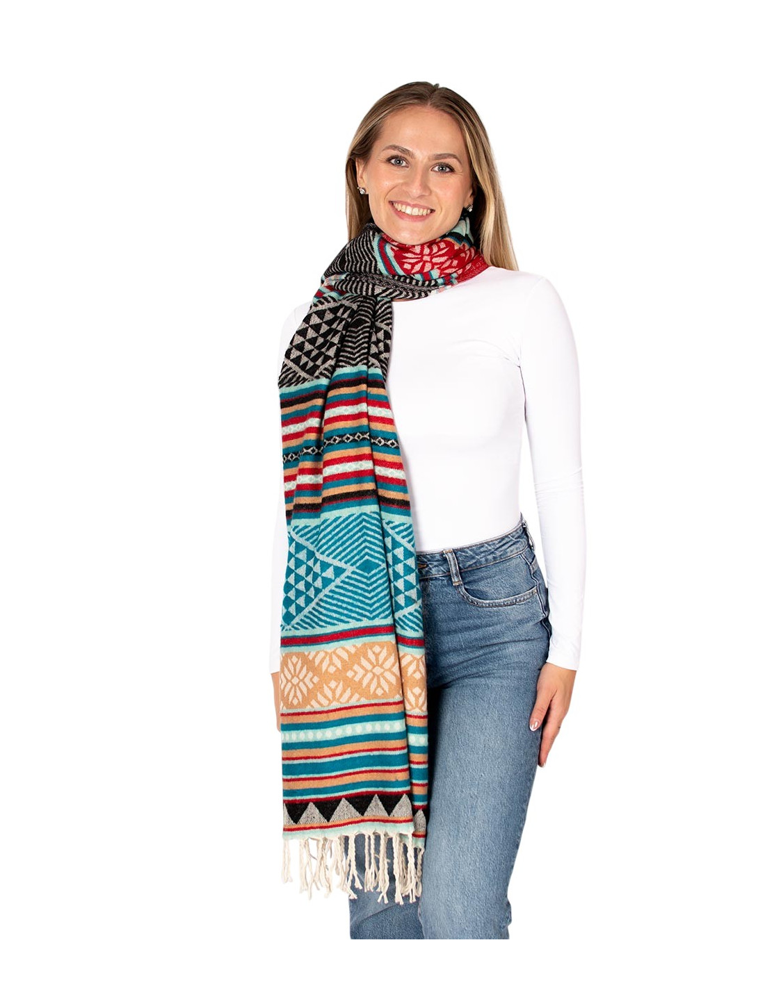 La sua consistenza morbida, le frange fatte a mano e il mix di colori vivaci ispirato all'artigianato indiano rendono questo scialle un accessorio versatile, ideale per l'inverno, i look boho, i viaggi o come caldo dettaglio decorativo.