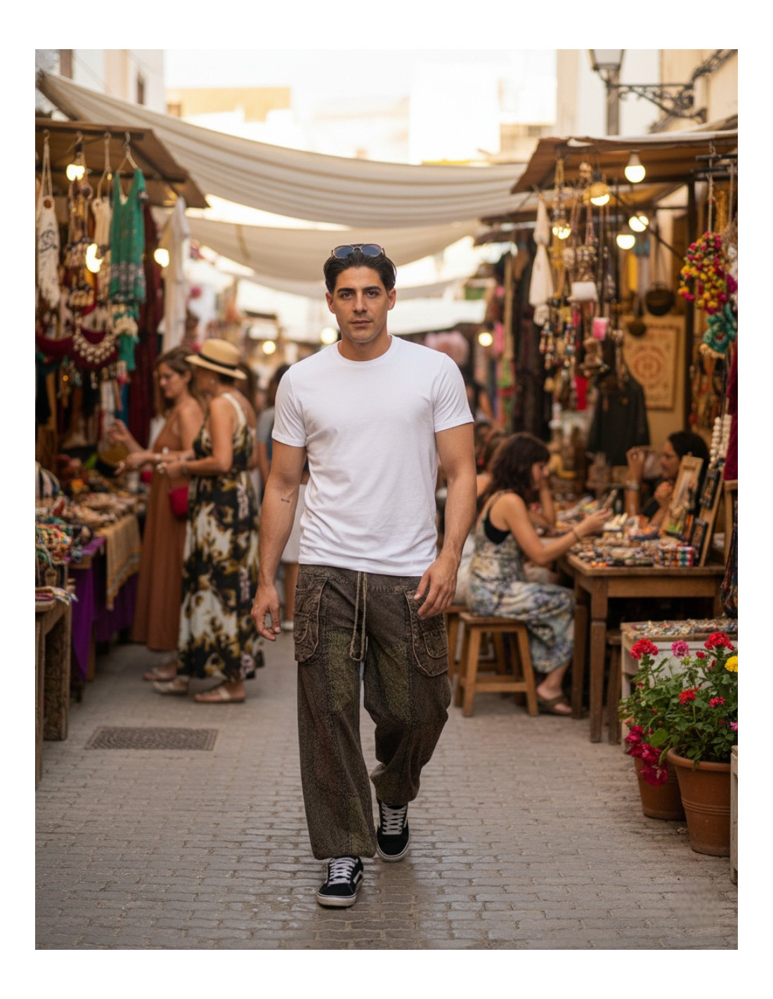 Il suo design include cuciture decorative , due pratiche tasche ed elastico alle caviglie per una vestibilità comoda e valorizzante. La cintura combina un elastico posteriore con un laccio anteriore , consentendo una facile regolazione a diverse corporature, rendendolo un capo unisex ideale in taglia unica .