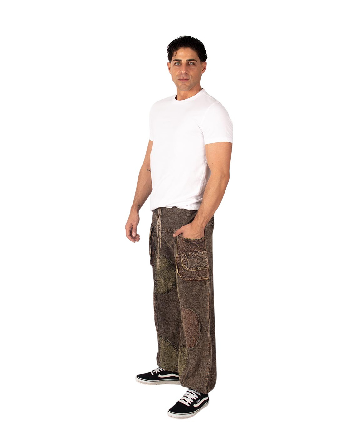 Questi pantaloni harem unisex in cotone , realizzati in India, sono un must-have per chi cerca comfort, stile alternativo e autentica artigianalità. Realizzati in cotone trattato con la tecnica Cotton Blast , presentano una finitura anticata tipica della moda etnica indiana.