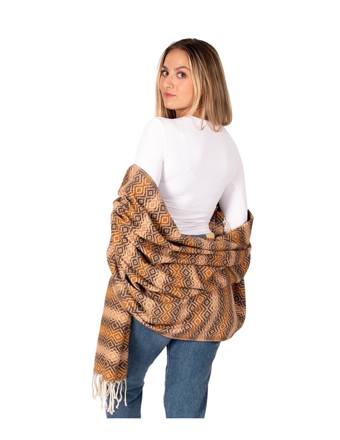Xale artesanal feito de algodão macio e quente, com franjas e cores exclusivas.