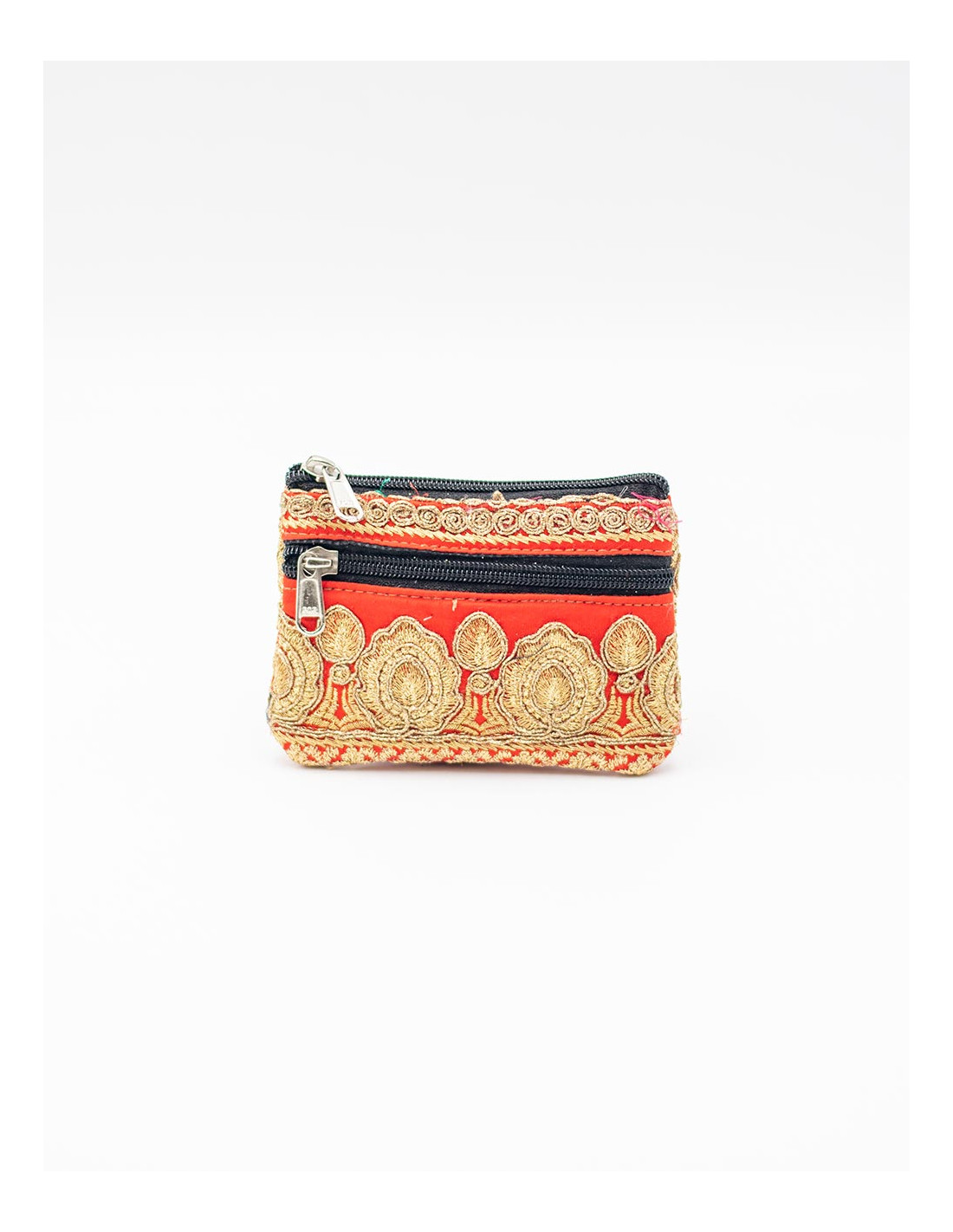 Bolsa média feita à mão com bordados de inspiração indiana e zíper duplo. Cada peça é única, prática e cheia de alma.