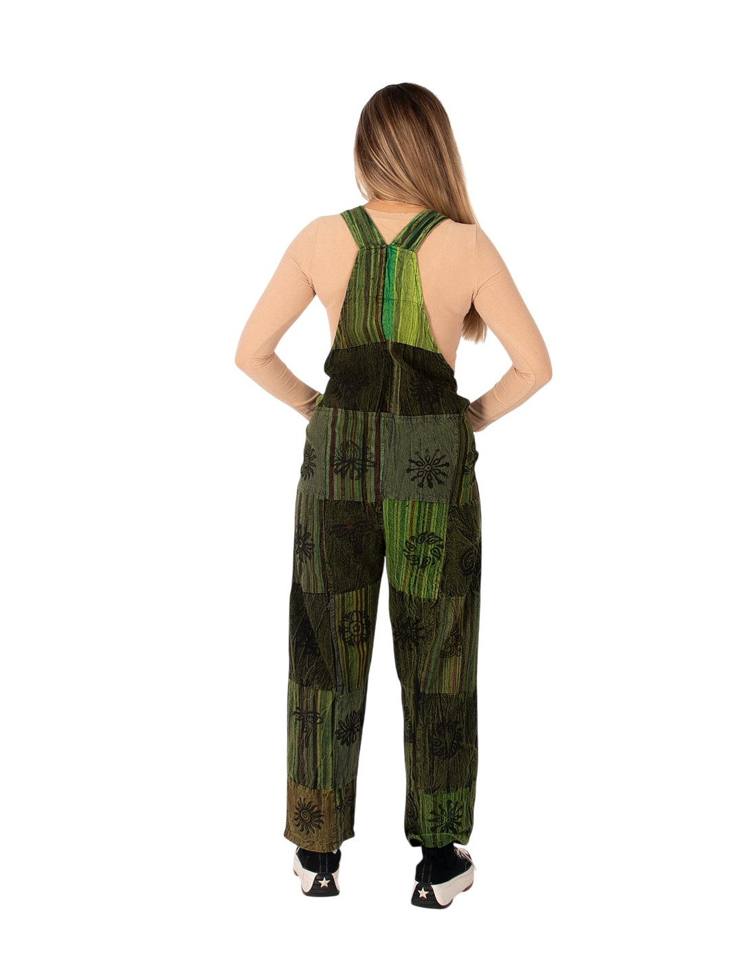 Macacão unissex verde de algodão feito à mão com patchwork – estilo étnico indiano