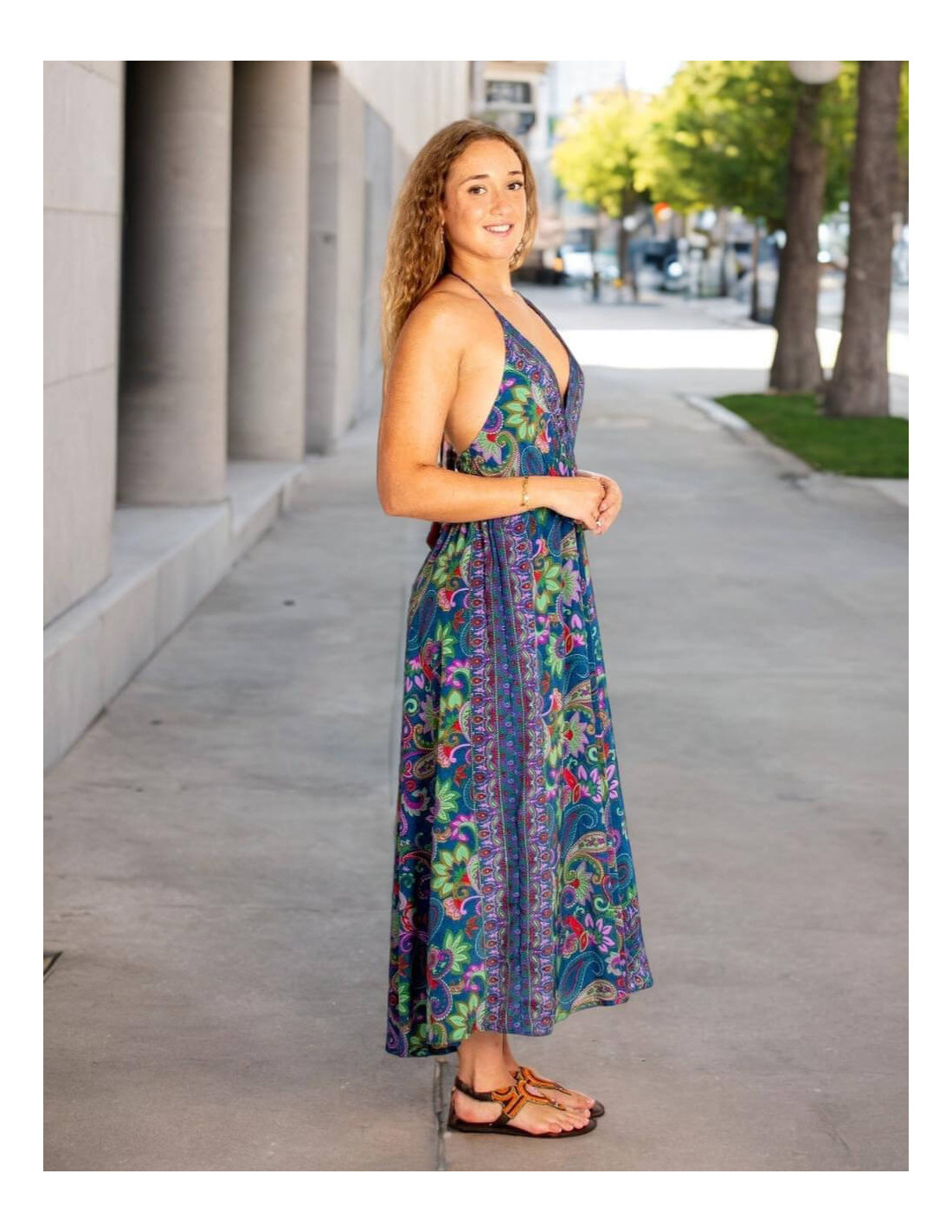 Vestido longo de seda boho Kimago – Elegância étnica com autenticidade indiana